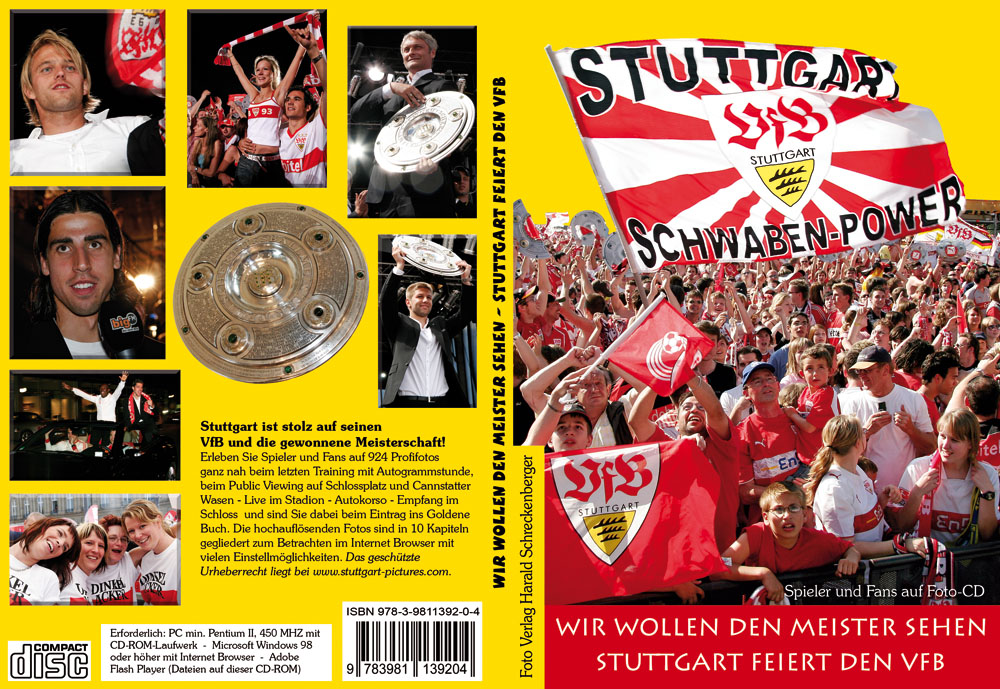 ![]() ![]() Am 15.06. 2007 erschien die Foto-CD "Wir wollen den Meister sehen. Stuttgart feiert den VfB" ISBN 978-3-9811392-0-4. Lassen Sie sich das einmalige Dokument mit 924 Profifotos für 10,80 € nicht entgehen.